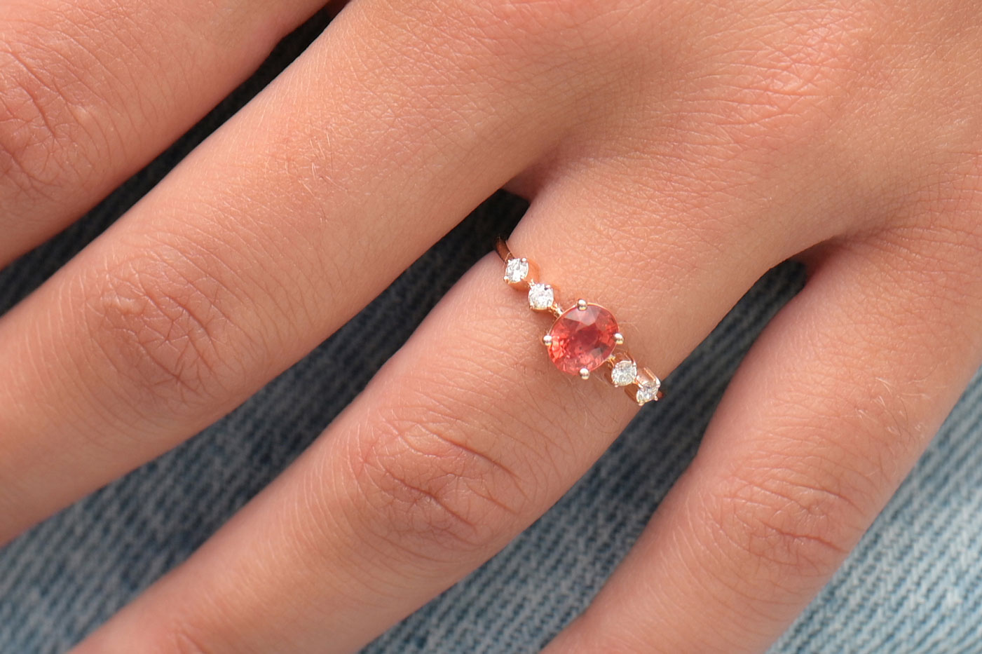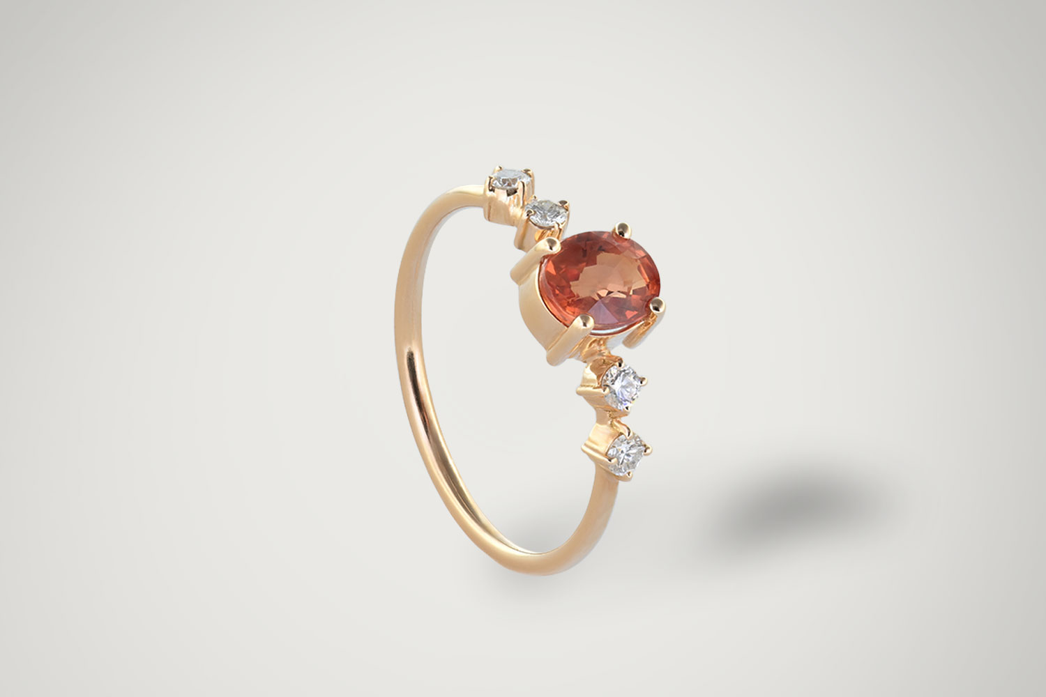 La bague Anna sublime la beauté des diamants et des pierres précieuses grâce à son design harmonieux à cinq pierres. Elle met en valeur un saphir central ovale spectaculaire (0,92 ct), encadré de 4 diamants ronds étincelants (0,16 ct), le tout monté sur une bande en or rouge 18 carats.