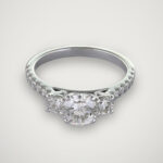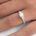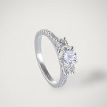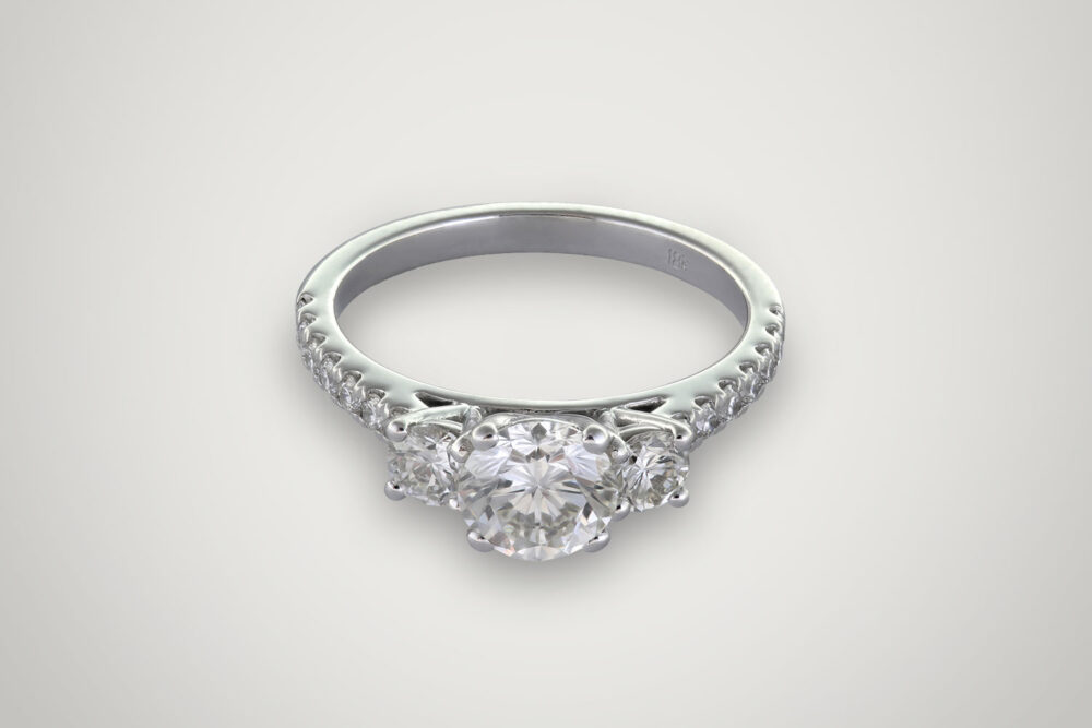 Emy est une remarquable bague en or blanc 18 carats à trois pierres précieuses. Elle est composée d’un diamant central rond (0,91 ct), encadrée de 2 diamants plus petits (0,24 ct) et de même forme de chaque côté et est également accompagnée de 16 diamants (0,20 ct) fixés sur l’anneau. Somonian vous offre ici une œuvre d’art qui rehausse l’éclat d’une bague, telle que celle d’Emy, lorsqu’elle repose sur votre doigt. Un autre bijou très coquet que vous devez checker est notre bague Eva.