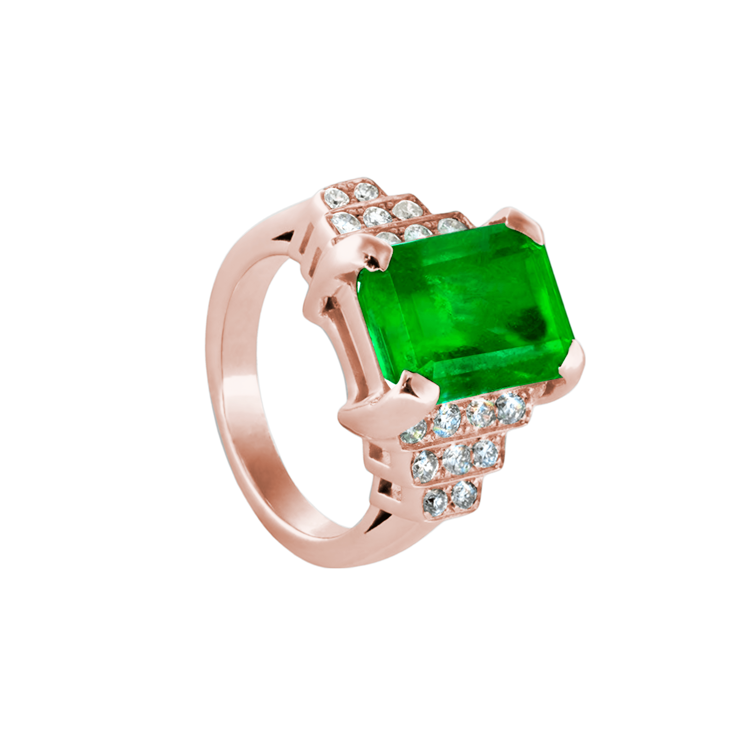 Explorez les portes de l’émeraude avec la bague Castle, une pièce majestueuse qui évoque l’opulence et le raffinement des châteaux anciens.