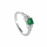L’émeraude est au centre de l’attention, appréciant le sertissage bec d’aigle et les 6 diamants qui l’habille. Joséphine est une bague qui porte un message d’espoir symbolisée par la couleur verte de son émeraude.