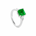 Au centre de cette création exquise, une émeraude taillée en asscher-cut brille de mille feux, encadrée de diamants étincelants qui soulignent son éclat naturel.
