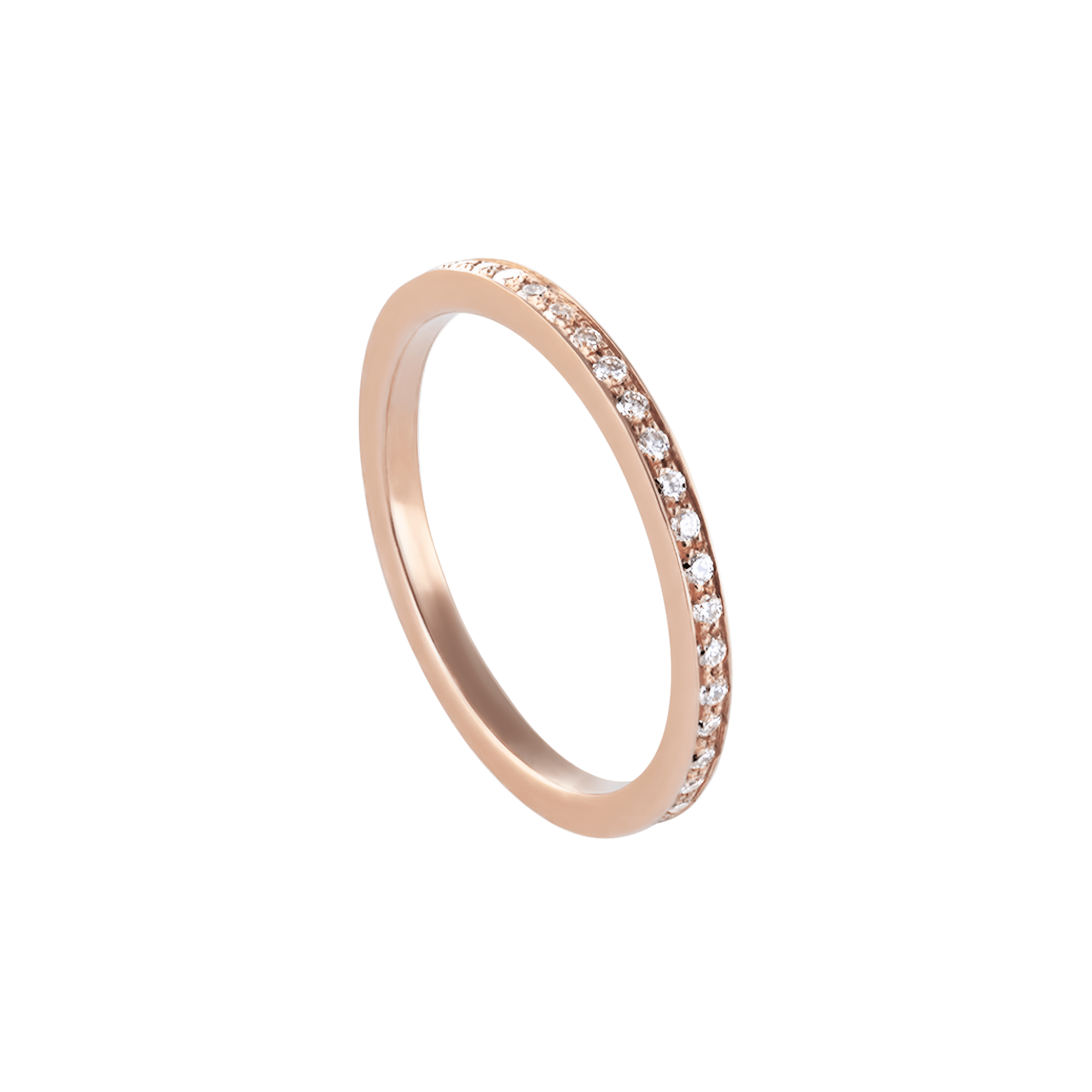 Cette bague exquise, disponible en or blanc, jaune, rose, rouge ou en platine, est le fruit d’un travail artisanal d’une précision exceptionnelle.