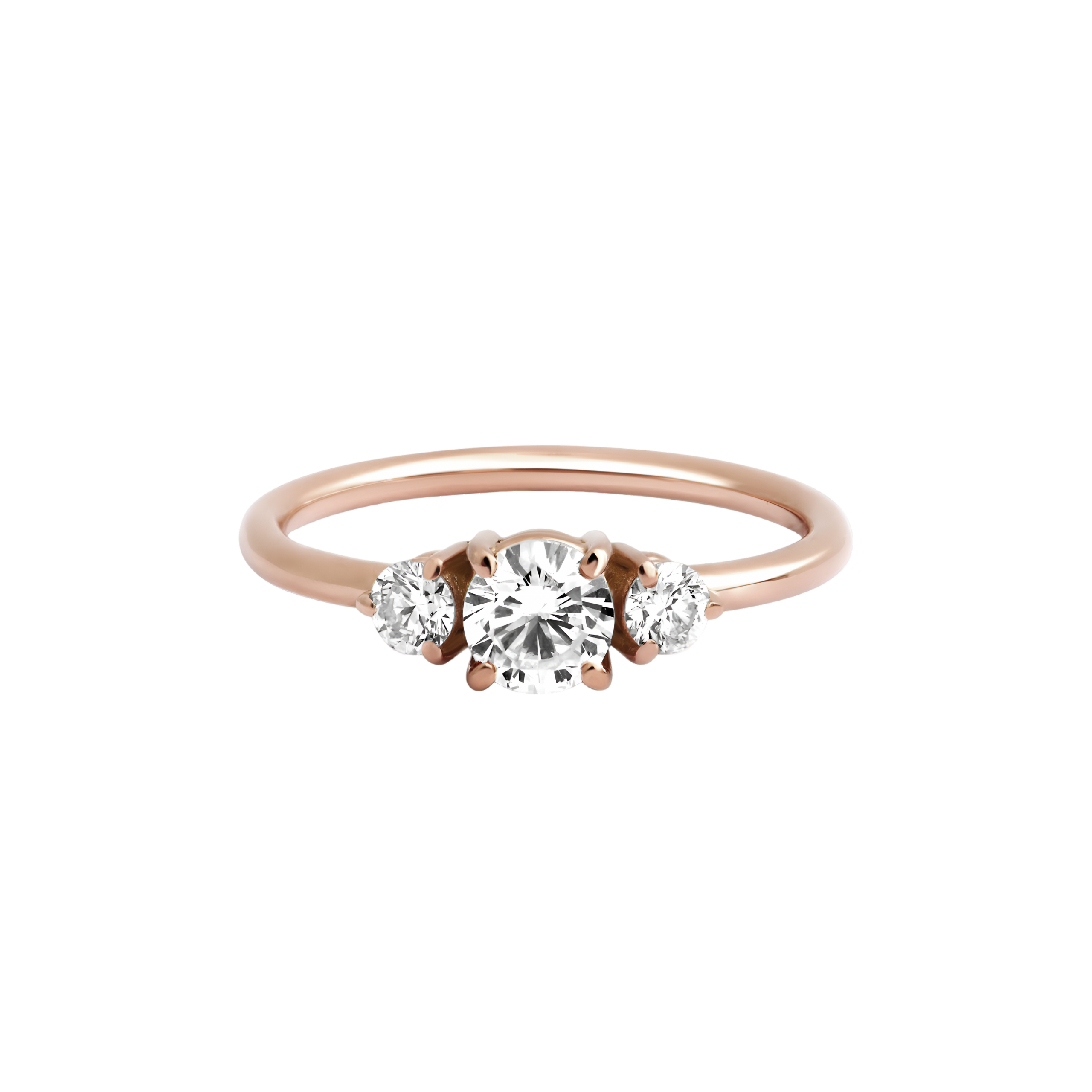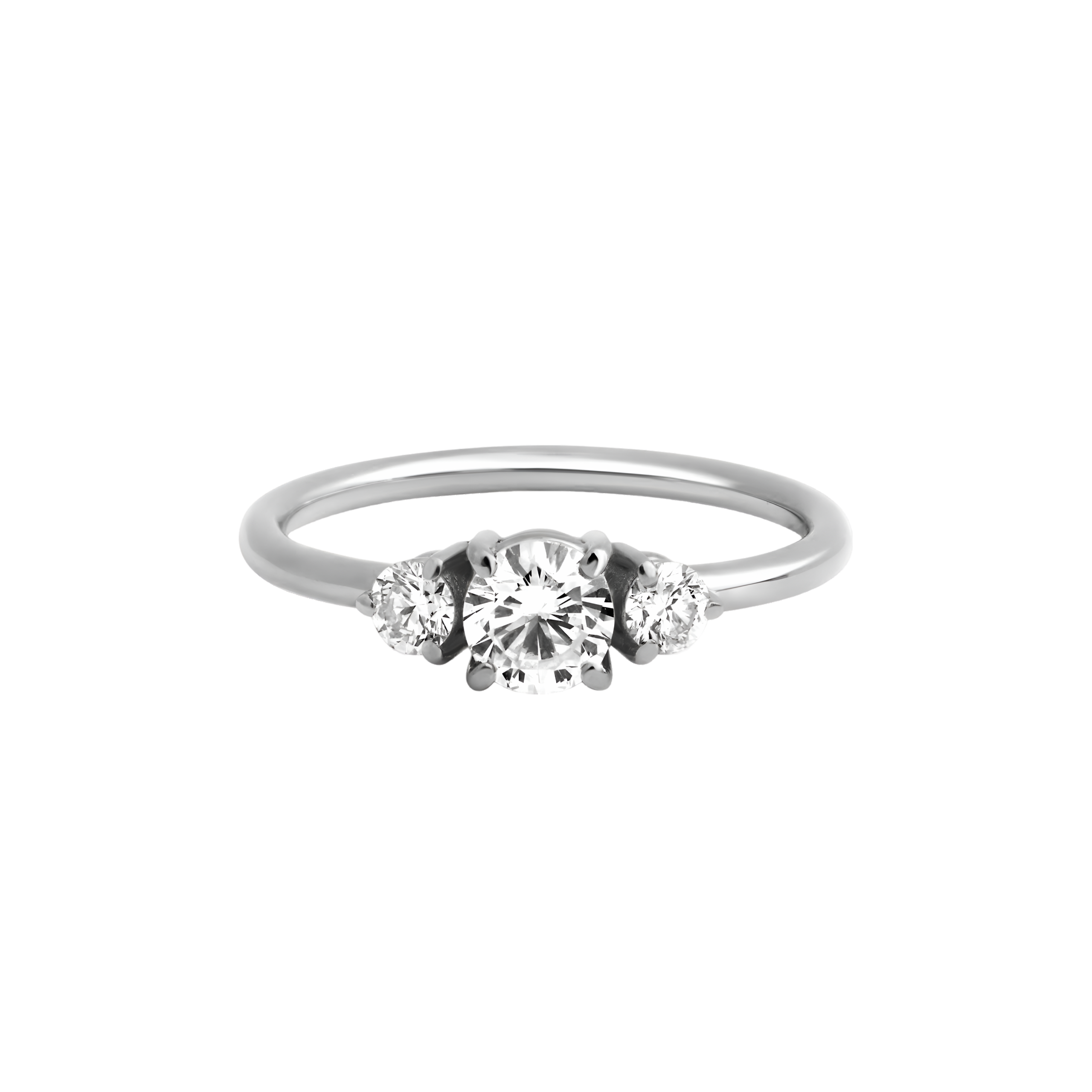 Composée d’un diamant central étincelant, accompagné d’un diamant de chacun de ses côtés, elle symbolise la connexion profonde et l’unicité de votre histoire d’amour.