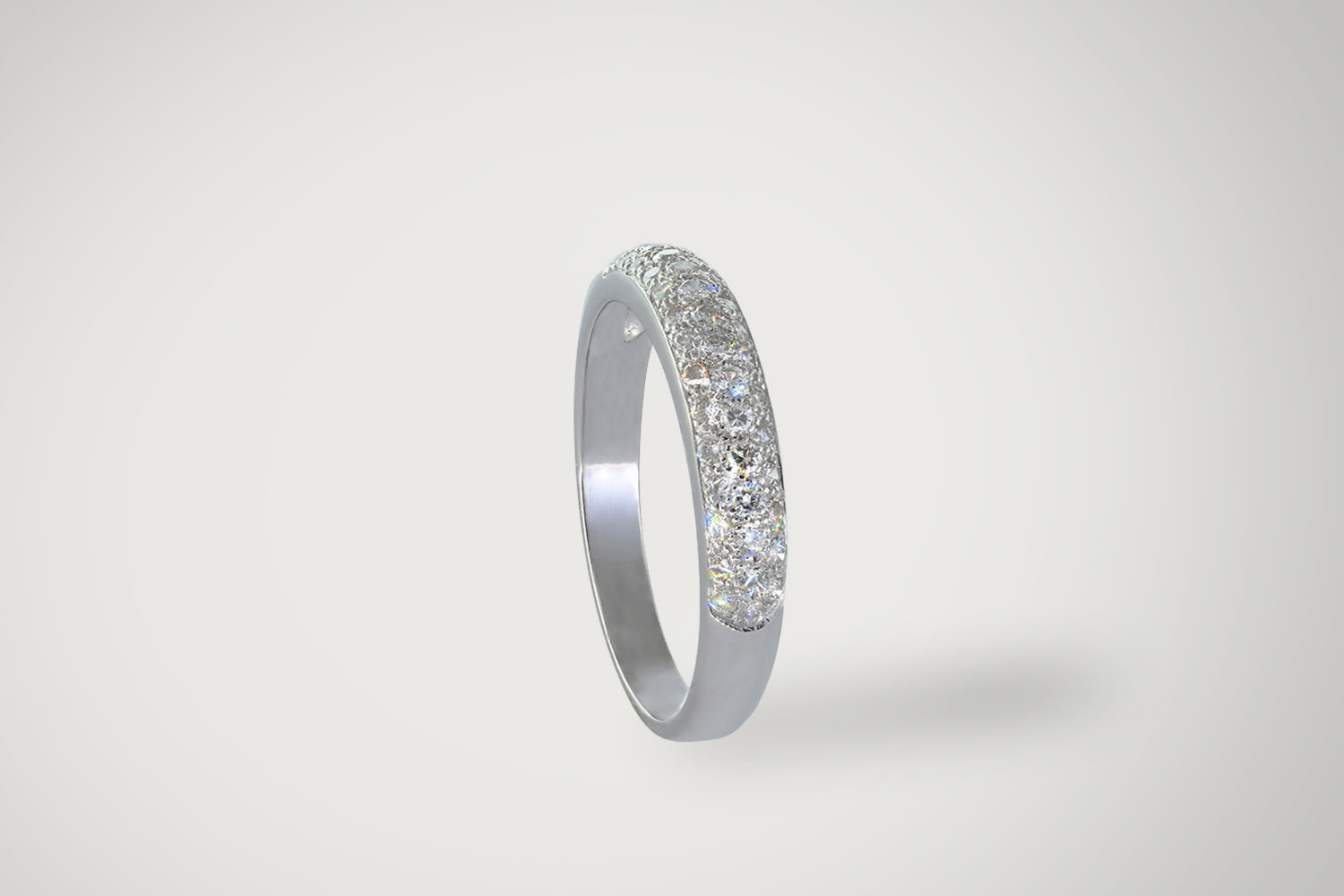 La bague Lina en or 18 carats est une alliance demi-jonc orné de 40 diamants ronds étincelants (0,52 ct). Son design royal diffuse des rayons de lumière éclatants, tandis que son anneau bombé et plat à l’intérieur assure un confort optimal.