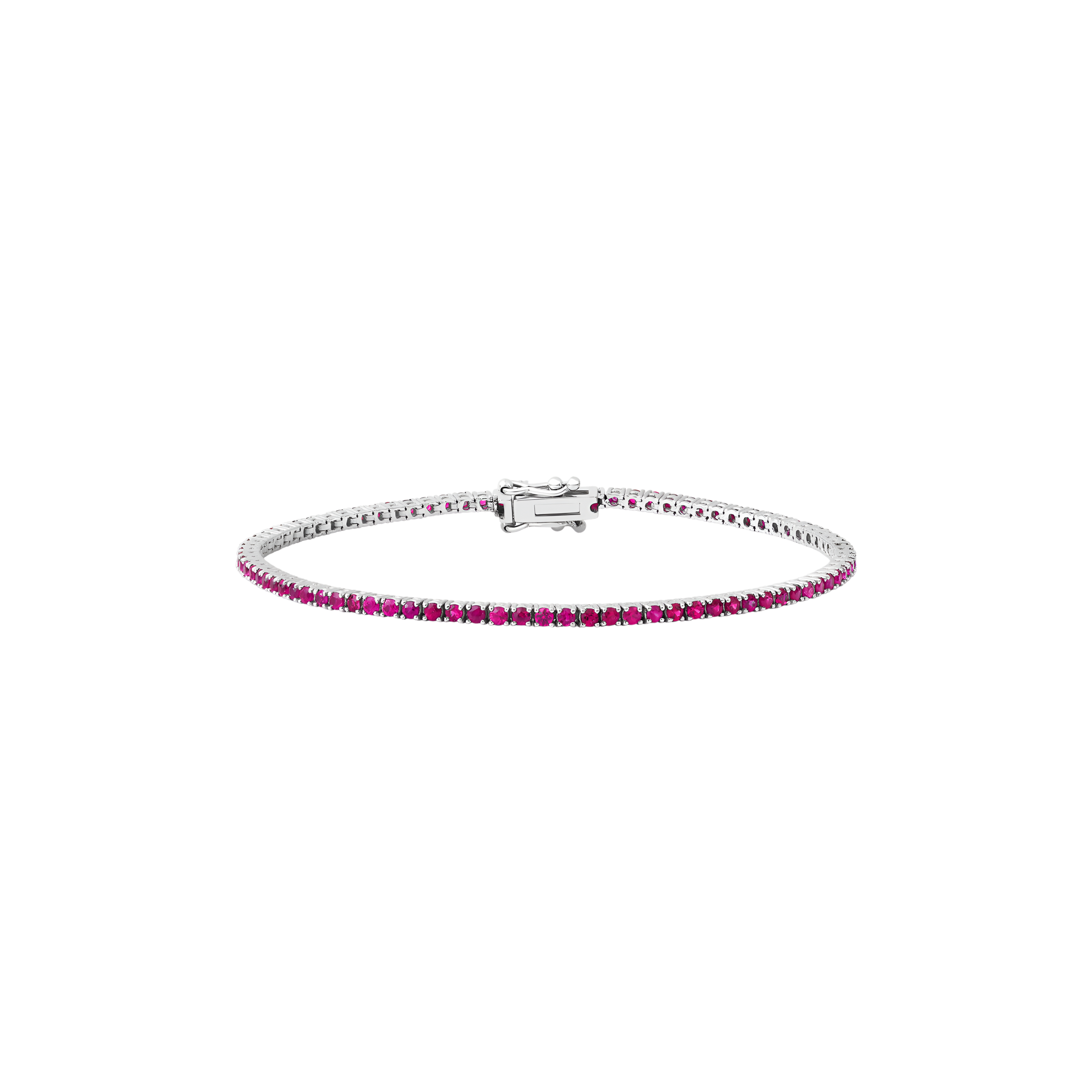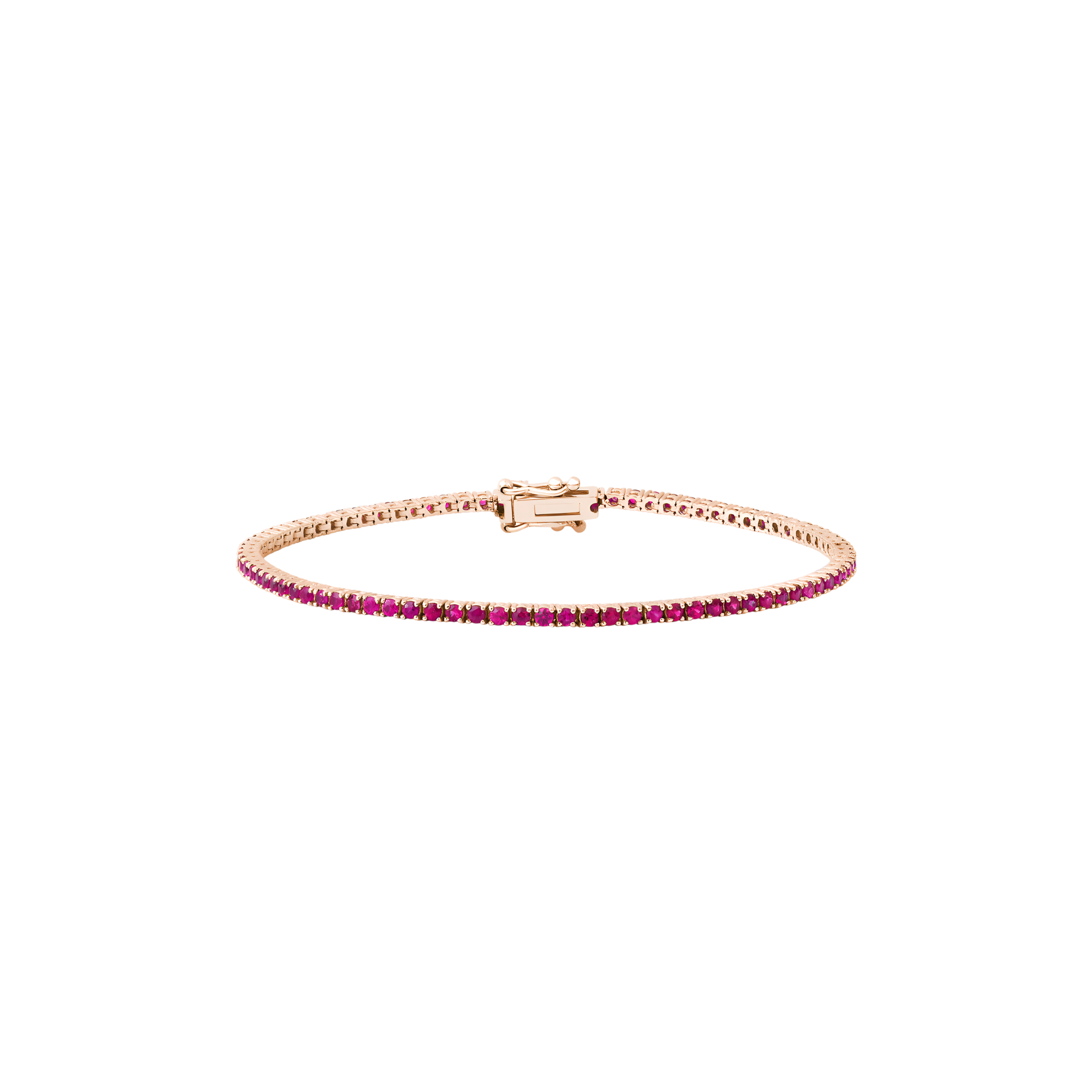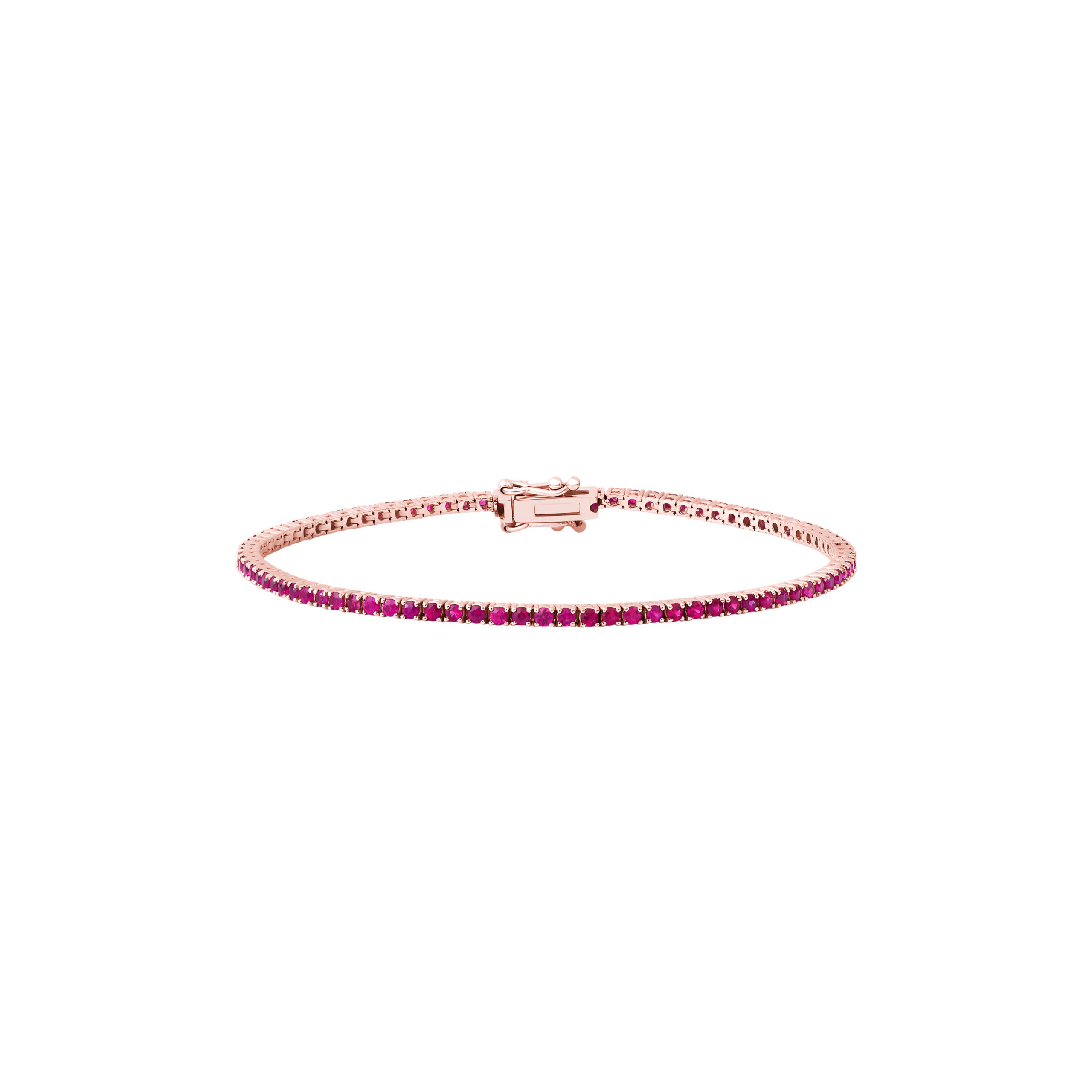 Admirez cette splendide pièce de joaillerie, un somptueux bracelet en or agrémenté de ravissants rubis roses, faisant ainsi honneur à l’appellation emblématique de bracelet rivière.